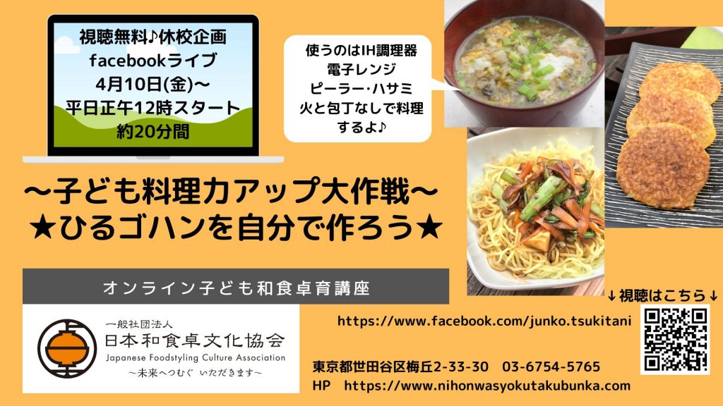 【子ども料理力アップfacebookライブ】に4/10(金)~挑戦!